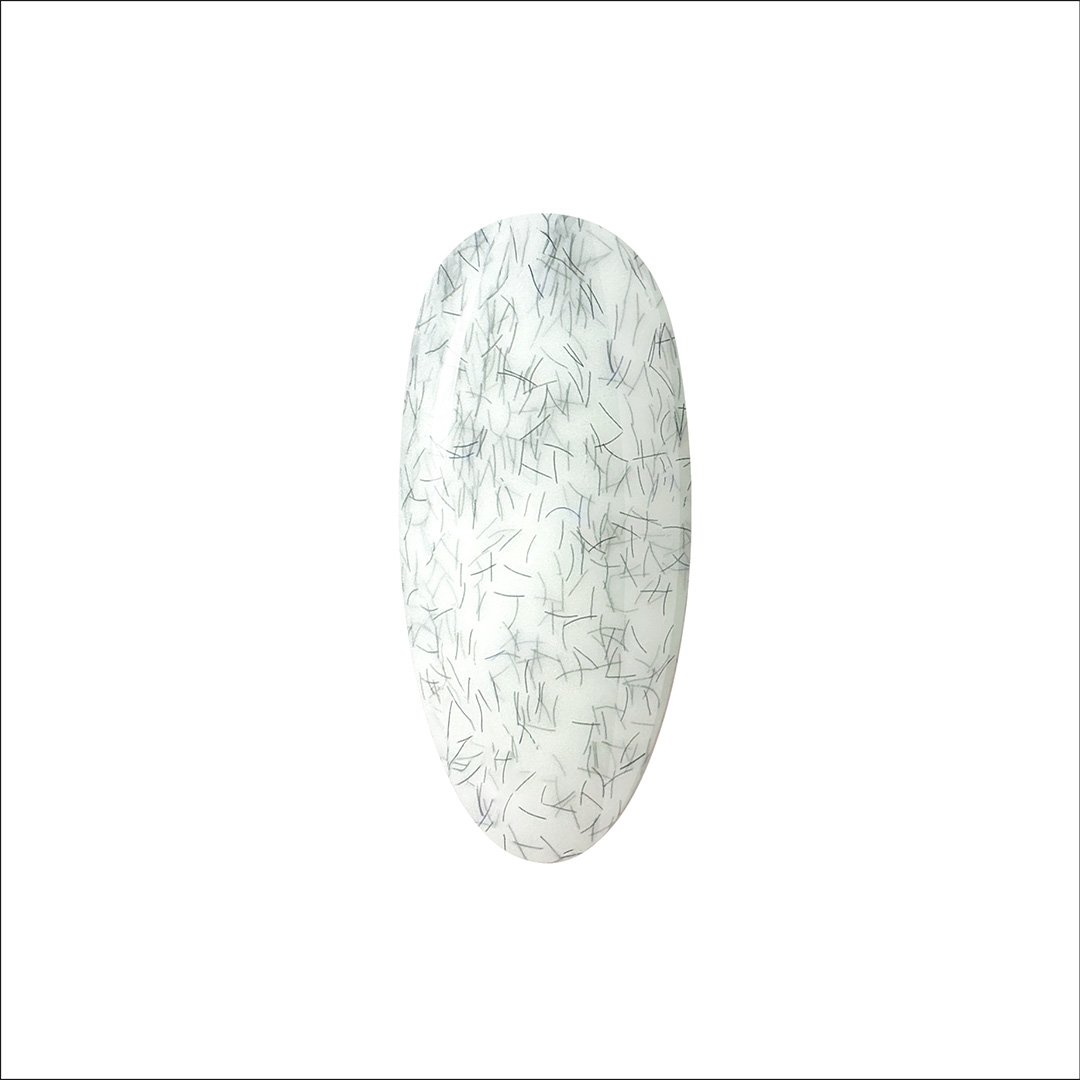Kleur 582 is een verfijnde pastel-melkachtige gellak met ingebedde donkergrijze microvezels die een elegant grijs sweater effect creëren. Perfect voor subtiele, minimalistische herfstlooks.