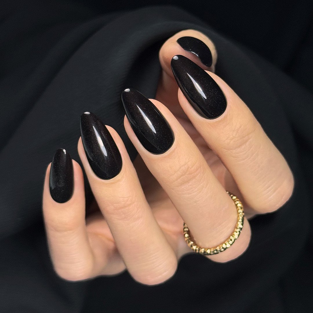594 Deep Lust van Slowianka Nail Trends is een diepe, verzadigde zwarttint met ingesloten deeltjes die zorgen voor een elegante, diffuus verspreide glans. De kleur trekt de aandacht met haar intensiteit en multidimensionale uitstraling en reageert prachtig op het licht.