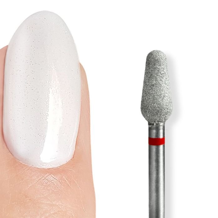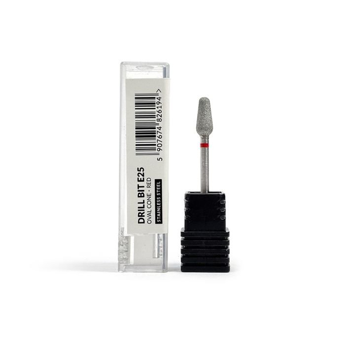 De E25 rode ovale freesbit van Slowianka Nail Trends is een diamantbit voor elektrisch vijlen en gecombineerde manicure, ontwikkeld voor een nauwkeurige behandeling van de nagelriemen en nagelwallen.