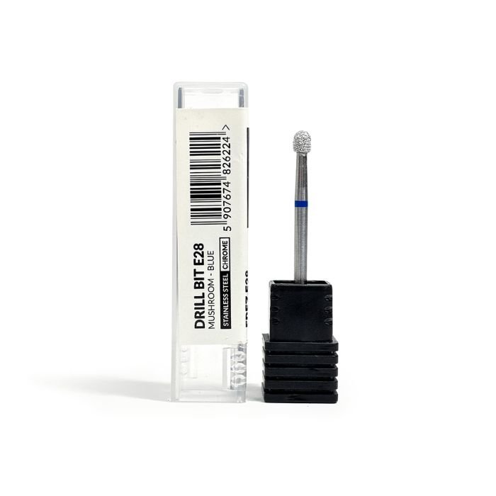 De E28 blauwe paddenstoel diamant freesbit van Slowianka Nail Trends is een diamantbit voor elektrisch vijlen en gecombineerde manicure, ontwikkeld voor een nauwkeurige en veilige behandeling van de nagelriemen.